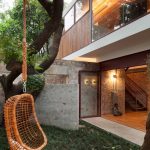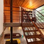 A conexão entre os pavimentos é marcada por uma nova escada e também pelo vazio residual da antiga escada. Consequentemente, a casa acaba por receber uma maior incidência de luz e ventilação natural.